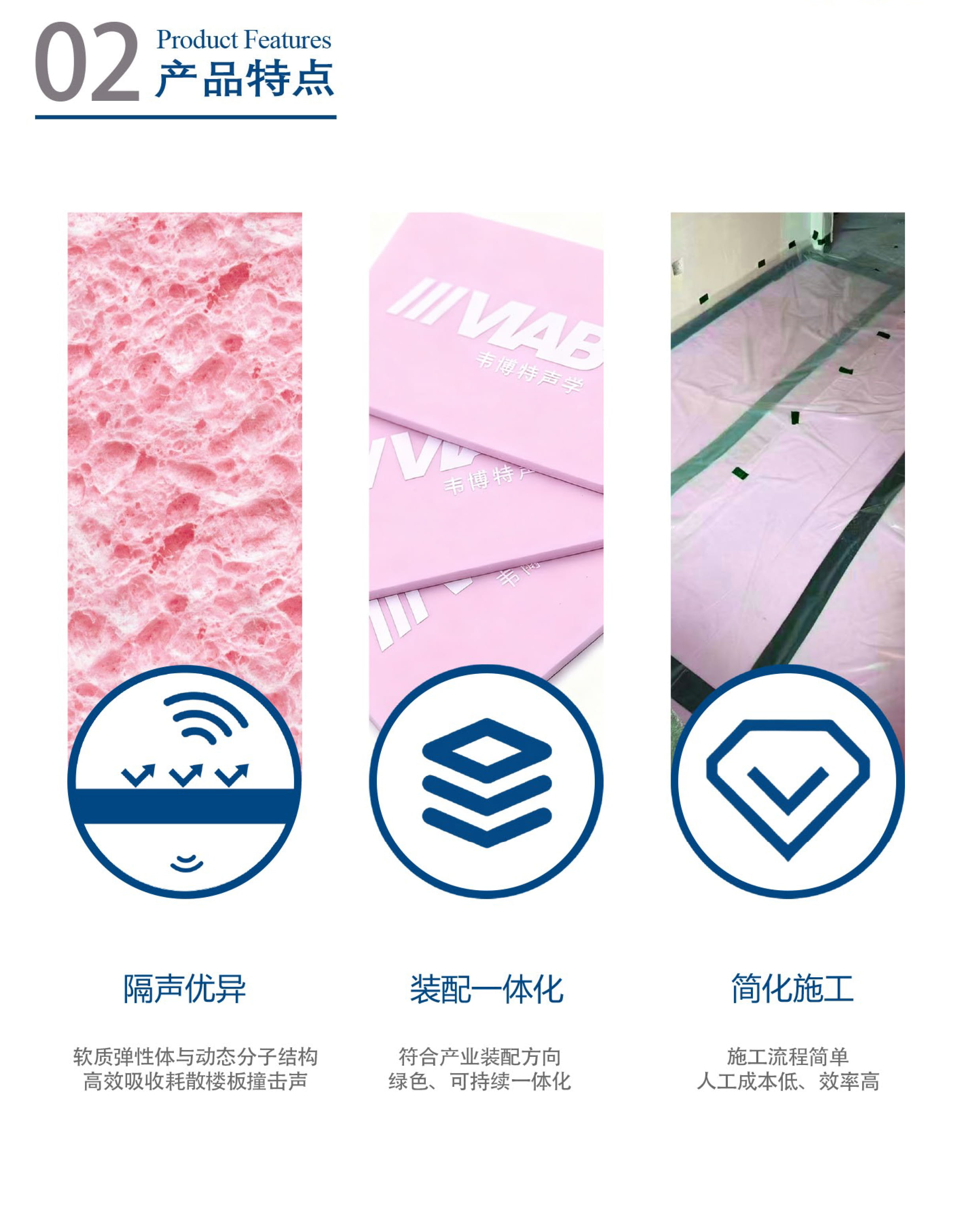 它核心针对楼板撞击声(脚步声、物体掉落)的痛点,其软质弹性体结构能高效耗散冲击能量,显著降低噪声传递。同时,材料内部丰富的微气孔结构有效阻滞热流,提升上下楼层间的保温效能,尤其适合搭配地暖系统,减少热能损失。该材料质轻、抗压、施工便捷,可直接铺设于楼板结构层上,在有限层高内实现优异的保温与隔声双重性能,是打造静谧、节能楼板的理想选择。