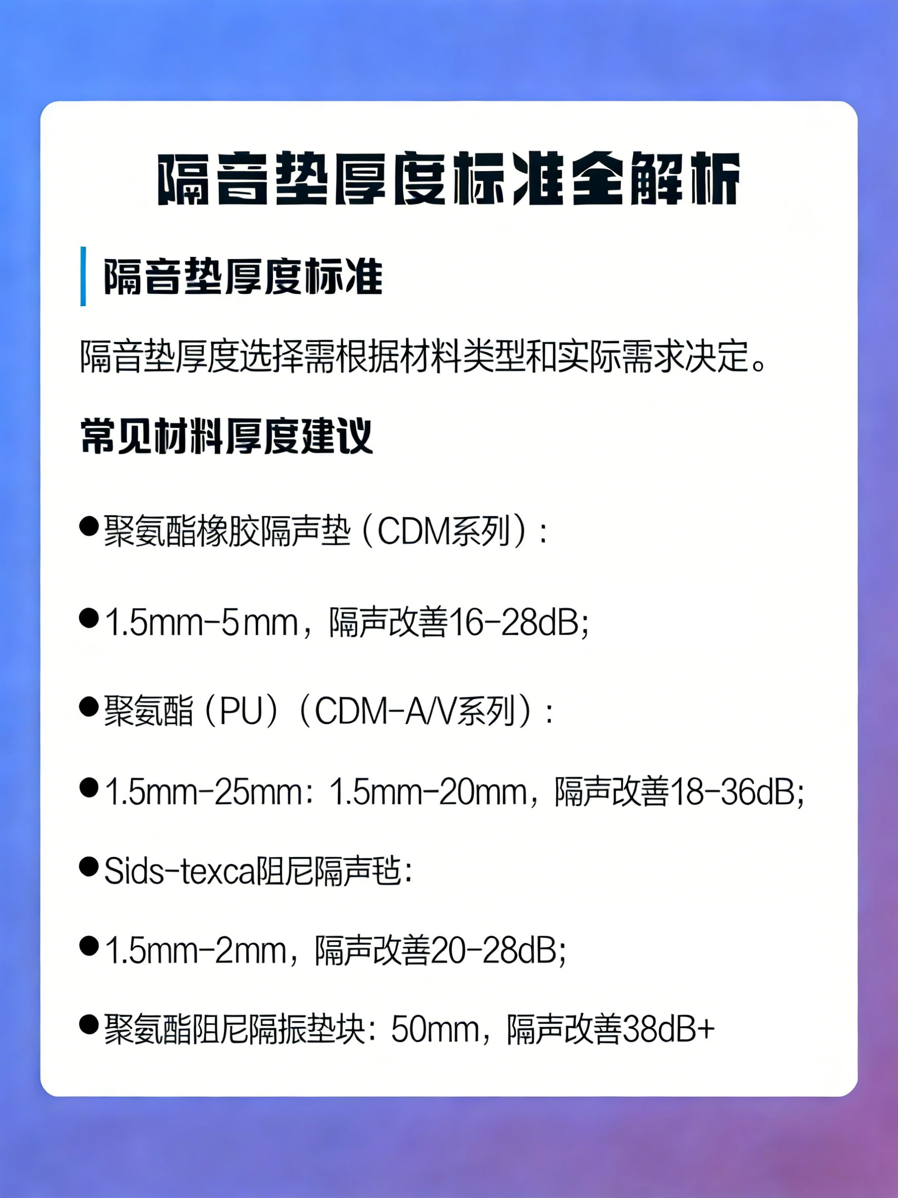一、主流材质隔音垫厚度与性能对应表
