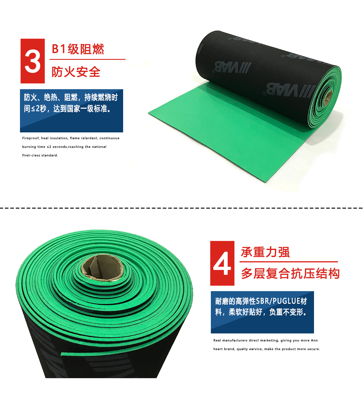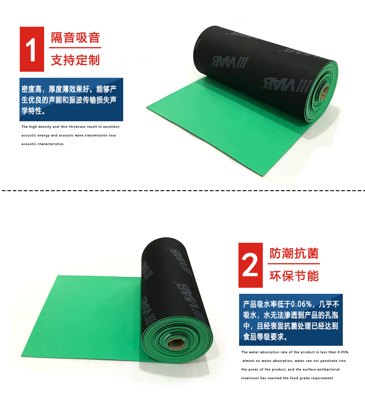 韦博特隔音垫采用专利工艺生产的隔音卷材具有吸音降噪的卓越声学性能。