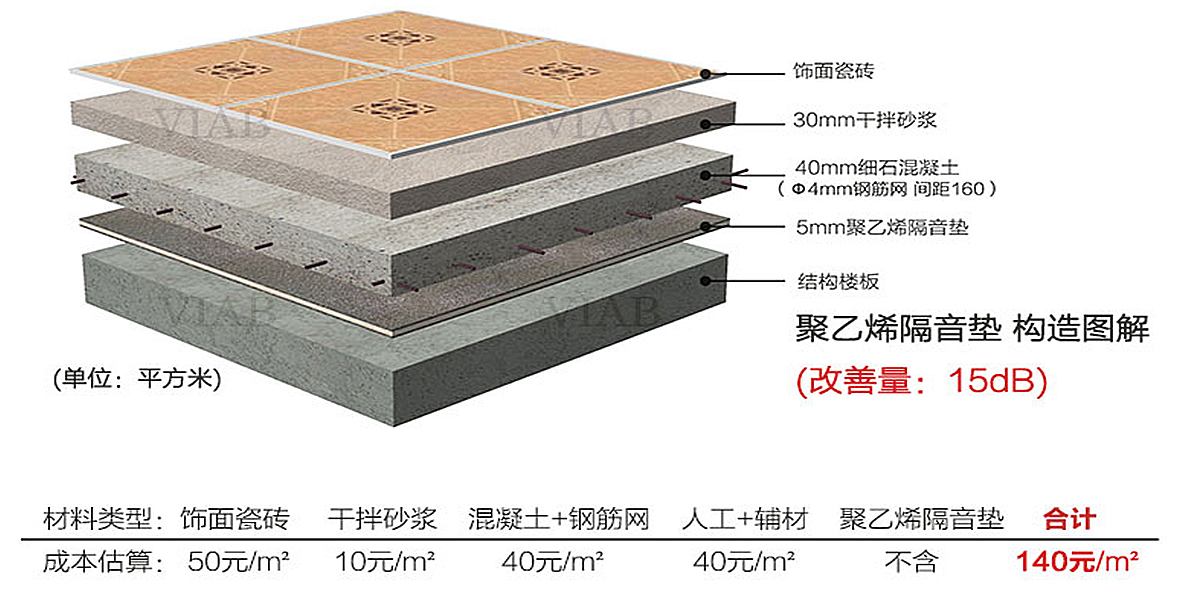 由于韦博特隔音垫的密度高,因此不用做混凝土层,从而降低了综合单价。
