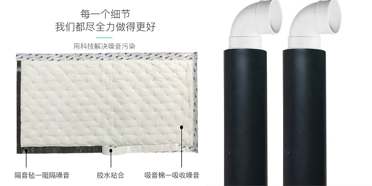 排水排污管道路噪声,是水流撞击管壁产生振动引起,传统包覆裹棉无法达成隔声效果。新式隔音毡材料效果非常明显,操作简单,广泛应用在酒店、住宅下水管道的隔音包裹材料。