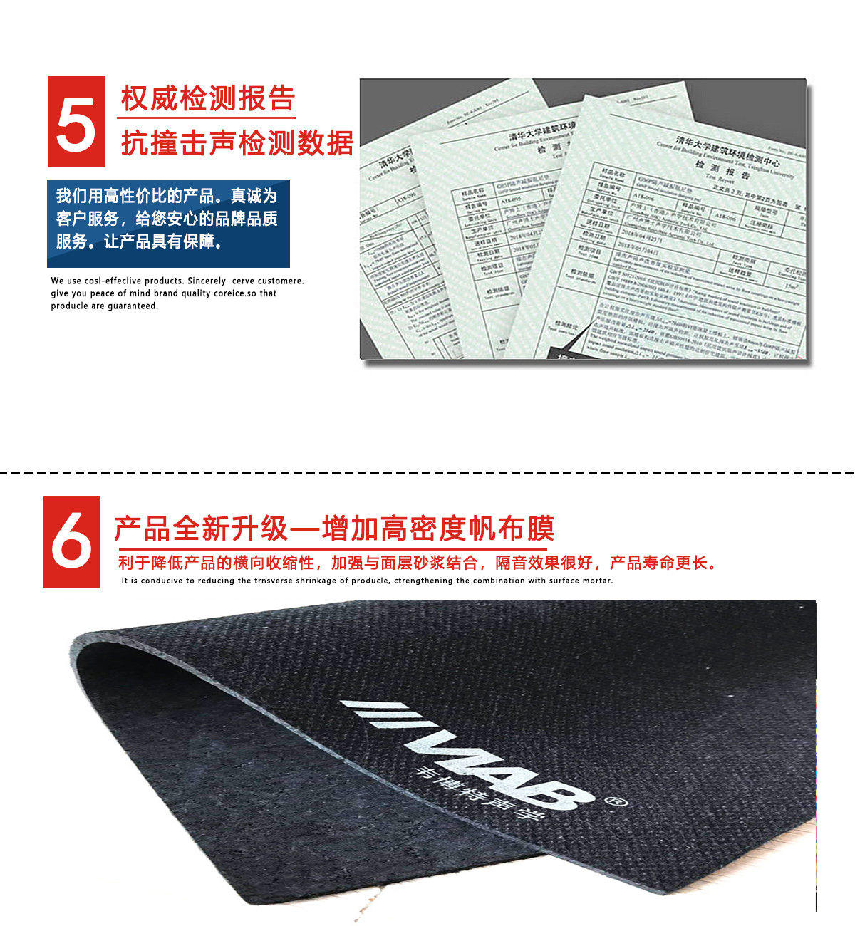 材料刚度较高且较薄, 与混凝土层结合紧密,脚感与传统非浮筑楼板无异, 完全解决了传统浮筑楼板空鼓开裂的现象。