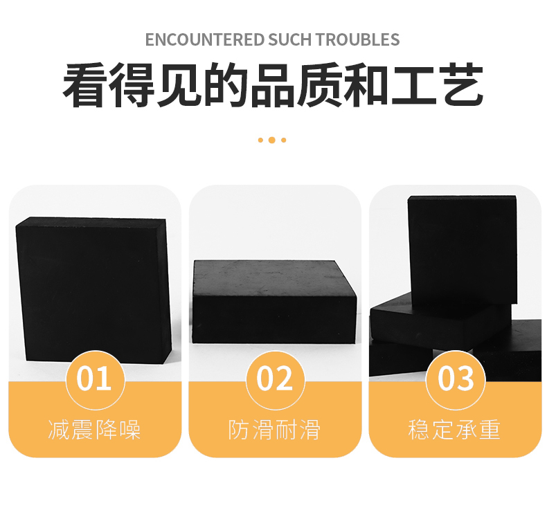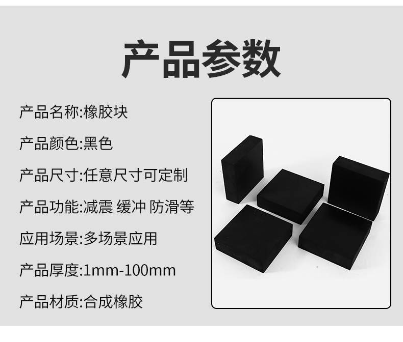 ●产品名称:建筑工业橡胶减振垫 ●产品颜色:黑色 ●产品尺寸:任意尺寸可定制 ●产品功能:减震 缓冲防滑等 ●应用场景:多场景应用 ●产品厚度:1mm-100mm ●产品材质:合成橡胶