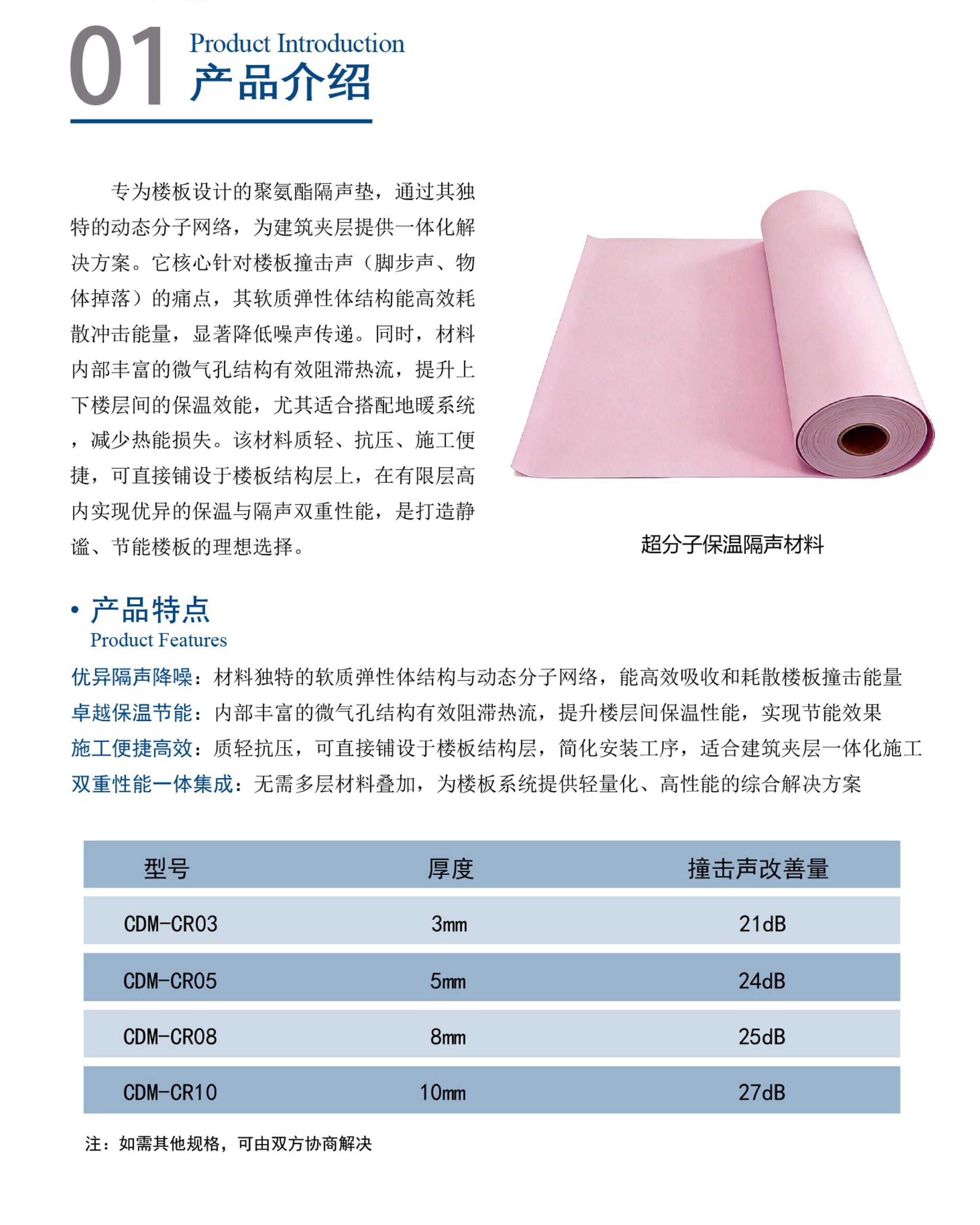 专为楼板设计的聚氨酯隔声垫,通过其独特的动态分子网络,为建筑夹层提供一体化解决方案。